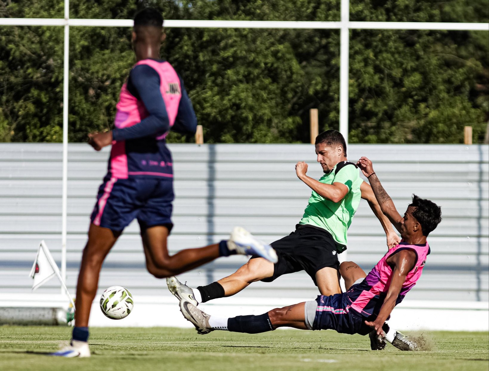 Outra observação que fiz nos minutos que acompanhei. Do outro lado do campo, uma espécia de rachão com a turma que vai ficar como opção ou não viajam. Lá estavam peças importantes do elenco, como o volante Edson, o atacante Wallyson, o segundo volante Randerson e também o zagueiro Darlan. Ainda não vi o time do ABC jogar, mas posso garantir, pelo que vi nesta manhã, que o time tem ótimas peças de reposição. Incluo os garotos Maurício e Cauã Gabriel.