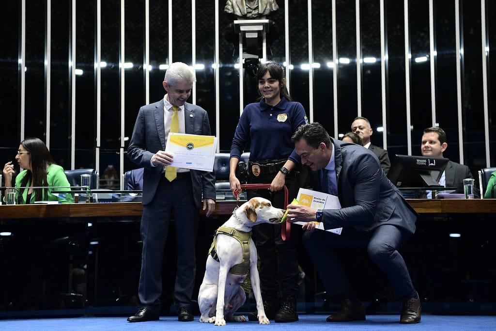 Cães e policiais legislativos- As homenagens começaram pelos policiais legislativos com os cães farejadores que os acompanham: Helena Gomes e K9 Jethro, José Antonio Luiz Neto e K9 Nix, Graziela de Morais e K9 Axel e, ainda Virgínia Dantas e K9 Hummer.