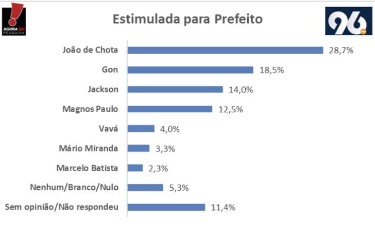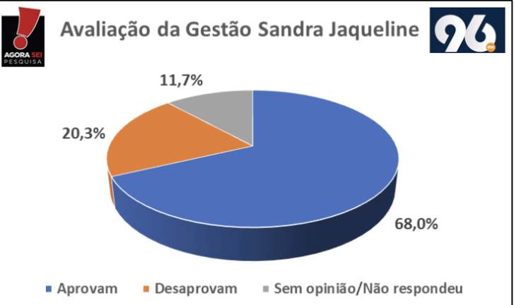 A 96 FM divulgou com exclusividade nesta segunda-feira (18) os números da Pesquisa AgoraSei em Fernando Pedroza, com a avaliação da gestão da prefeita Sandra Jaqueline, e as expectativas para a corrida eleitoral em 2024. Os números da aprovação são os seguintes:
