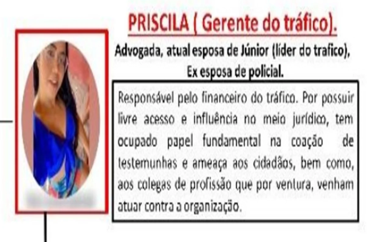Acusada de facilitar a comunicação de membros da facção Bonde do Maluco (BDM), a advogada Erica Priscilla da Cruz Vitorino (foto em destaque) é namorada de Marlos Araújo Souza, conhecido como “Bolão” e apontado como líder da mesma organização. Com informações da coluna Na Mira, do Metrópoles.