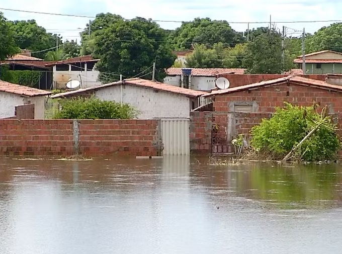 O alagamento na cidade aconteceu após a sangria do Açude Pataxó. A lâmina da sangria chegou a ser de 1,1 metro, mas nesta quinta-feira (11) estava com 38 centímetros.