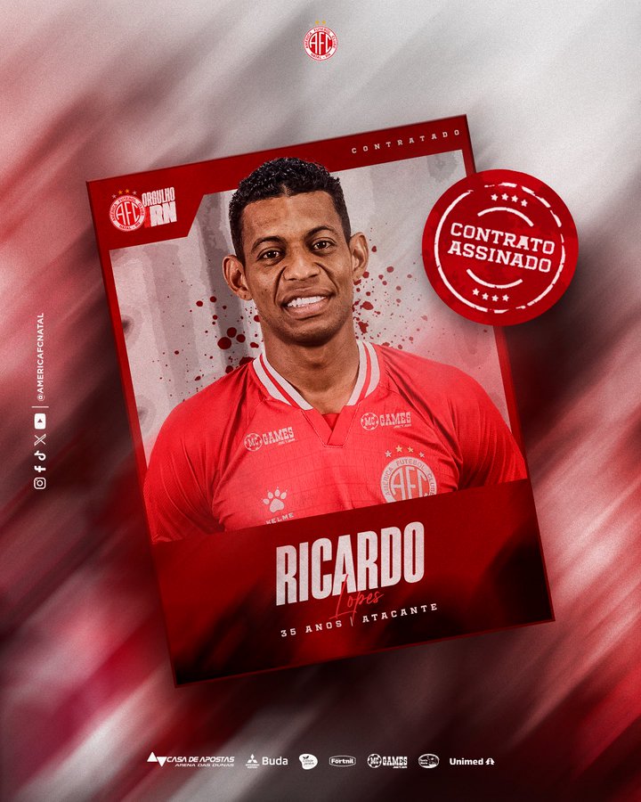 O atacante Ricardo Lopes, de 35 anos, é mais um nome confirmado para fortalecer o elenco alvirrubro na temporada 2026. Após um período de atividades na pré-temporada, o novo reforço assinou contrato. No futebol brasileiro, Ricardo tem passagens por Ituano, Globo e Fortaleza. Desde 2015, atuava no futebol internacional, onde defendeu Jeonbuk Motors-KOR, Shanghai Port-CHN, JEF United-JAP, Vorskla-UKR, Suwon FC-KOR, Busan IPark-KOR e, por último, o Lamphun Warrior-TAI. No currículo, o atacante soma conquistas como a AFC Champions League Elite e três títulos da primeira divisão do Campeonato Sul-Coreano.