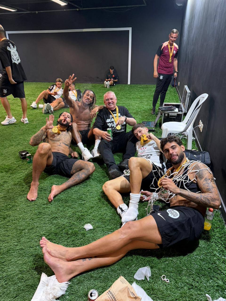 Alguns jogadores do Corinthians especialmete emocionados, casos do Gabriel Paulista que voltou ao Brasil para defender seu time de coração. Do artilheiro Yuri Alberto que costuma ter fases de vilão e heroi. Do menino Breno Bidon, cracaço, que nem era titular e hoje é o cérebro do time, mas útil e importante que o holandês caríssimo. Do goleiro Hugo, cria do Flamengo ou do Bidu, cria da casa, lançado por Luxemburgo. O Menino Kaio César, que participou de sua primeira final e ficou impressionado, encantado com a Fiel, e mostrando muita personalidade.