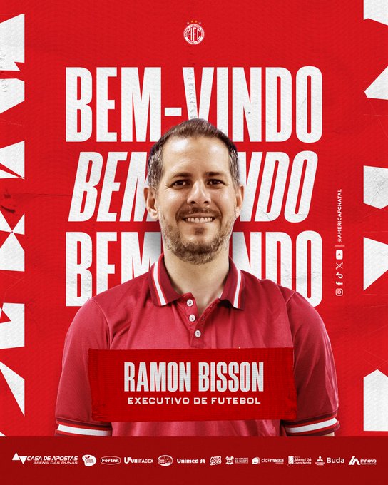 O América Futebol Clube SAF anuncia Ramon Bisson como o novo Executivo de Futebol. Aos 37 anos, Ramon estava no Manaus-AM e já desempenhou a função em clubes como XV de Piracicaba-SP, Portuguesa-SP e Santo André-SP. Com quase 10 anos de experiência na área e atualmente diretor da Associação Brasileira de Executivos de Futebol, Ramon é formado em Direito e possui pós-graduação em Direito Esportivo e Gestão do Esporte, além de certificações em Gestão de Futebol, Formação de Executivos de Futebol e Análise de Mercado pela CBF Academy.