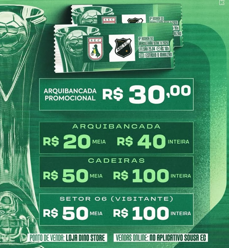 A exemplo do ABC, o Sousa também contratou. Semana passada anunciou o zagueiro Júlio Nascimento, que está de volta ao Dinossauro. Ele passou pelo Maranhão e estava no Serra Branca. Também acertou com o atacante Marcos Papa, 26 anos. Ele vem do Rio Preto, onde marcou 7 gols em 2026, e acumula passagens por Princesa/AM, União Barbarense/SP e Paranavaí/PR, além da base do Santos.