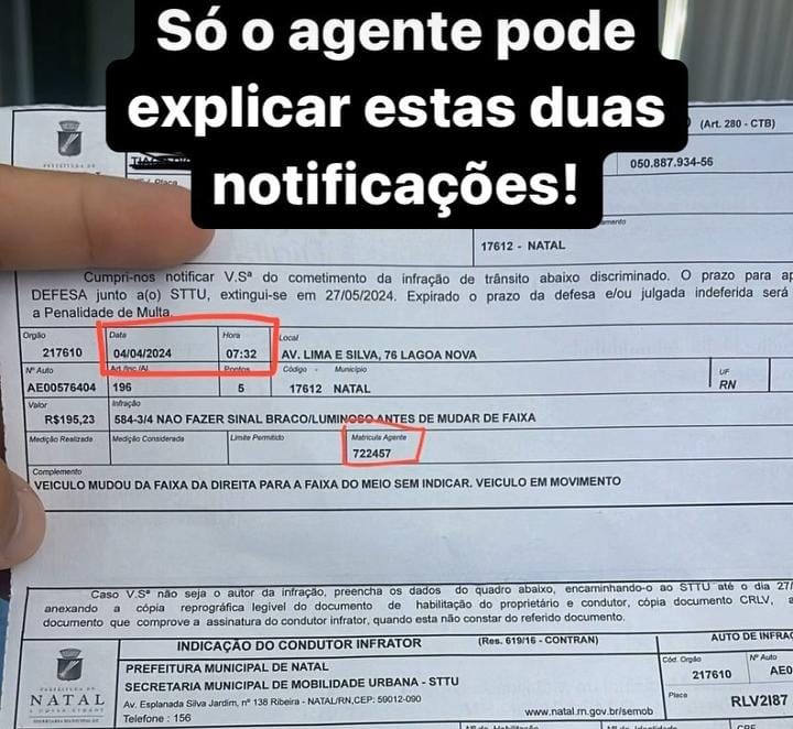 Os limites da criatividade da Secretaria Municipal de Mobilidade Urbana (STTU), para multar, foram atualizadas com sucesso. Nesta sexta-feira (12), a 96 FM recebeu duas notificações de duas multas aplicadas a um motorista por mudar de faixa duas vezes, sem ligar a seta. Os prints foram publicados pelo especialista em trânsito e ex-diretor de fiscalização de trânsito de Natal, Kennedy Diniz.