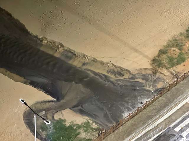 A "língua negra", como é conhecida, já havia surgido em outubro. Temor é que, além da sujeira, a força da água faça ceder parte do trecho da calçada.