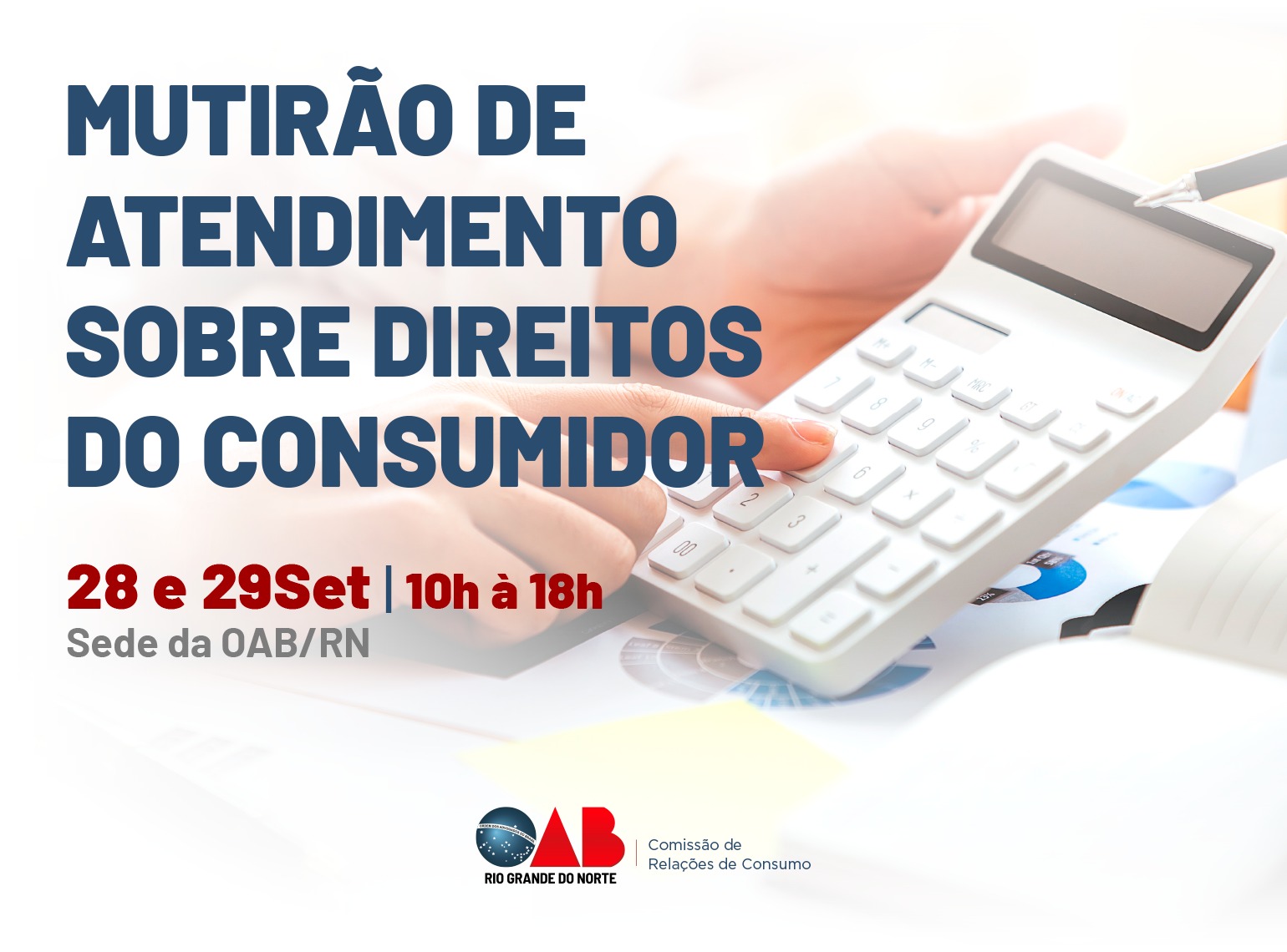 A Ordem dos Advogados do Brasil no Rio Grande do Norte (OAB/RN), por meio da sua Comissão de Relações de Consumo e Defesa do Consumidor fará, em 28 e 29 de setembro, das 10h às 18h, um mutirão de atendimentos para a população em geral para renegociação de débitos em conjunto a órgãos de defesa do consumidor.