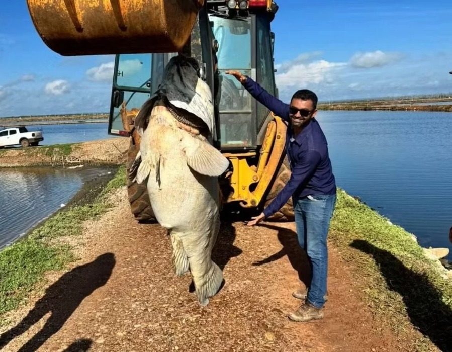 Um peixe de aproximadamente 200 kg foi encontrado já morto em um canal de abastecimento de uma fazenda de produção de camarão localizada em Pendências, região Oeste potiguar, na manhã desta terça-feira (5).