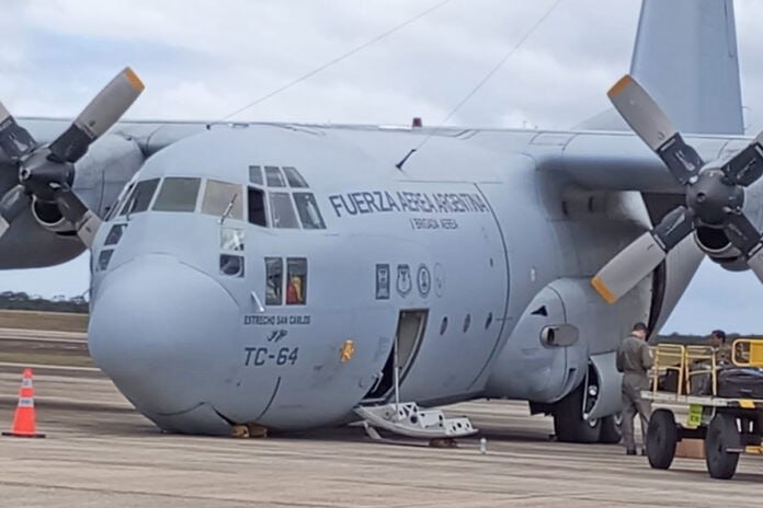 Um avião militar C-130 Hércules da Argentina acabou com seu trem de pouso de nariz colapsado no pátio do Aeroporto Internacional de Natal – Aluízio Alves, em São Gonçalo do Amarante, no Rio Grande do Norte.