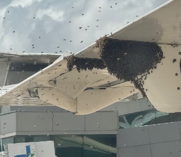 A "nuvem de abelhas" que cercou um avião e causou um atraso de mais de uma hora no desembarque de passageiros no Aeroporto de Natal era, na verdade, um enxame transitório, em busca de um novo ninho.