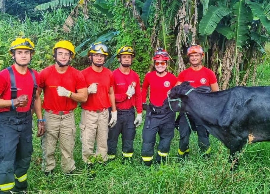 O Corpo de Bombeiros Militar do Rio Grande do Norte atendeu na tarde desta terça-feira (12) uma ocorrência de resgate a uma vaca que caiu em um tanque de água no distrito de Arenã, em São José de Mipibu.
