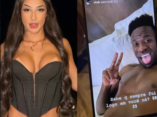 As imagens mostram uma interação entre Vini Jr., que atualmente namora a influenciadora Virginia Fonseca, e a vice-campeã de A Fazenda 14. “Sabe q sempre fui logo [louco] em você né?”, escreveu o craque do Real Madrid, supostamente, numa mensagem endereçada a Bia Miranda no direct do Instagram. Na foto, ele aparece sem camisa e mostrando a língua.
