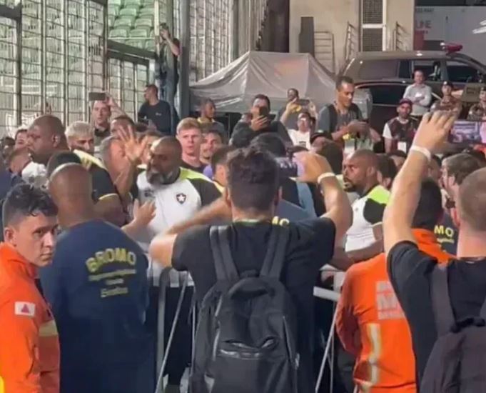 Na confusão, seguranças do Botafogo chegaram a erguer um gradil na tentativa de atingir os profissionais de segurança contratados pelo estádio, mas foram contidos.