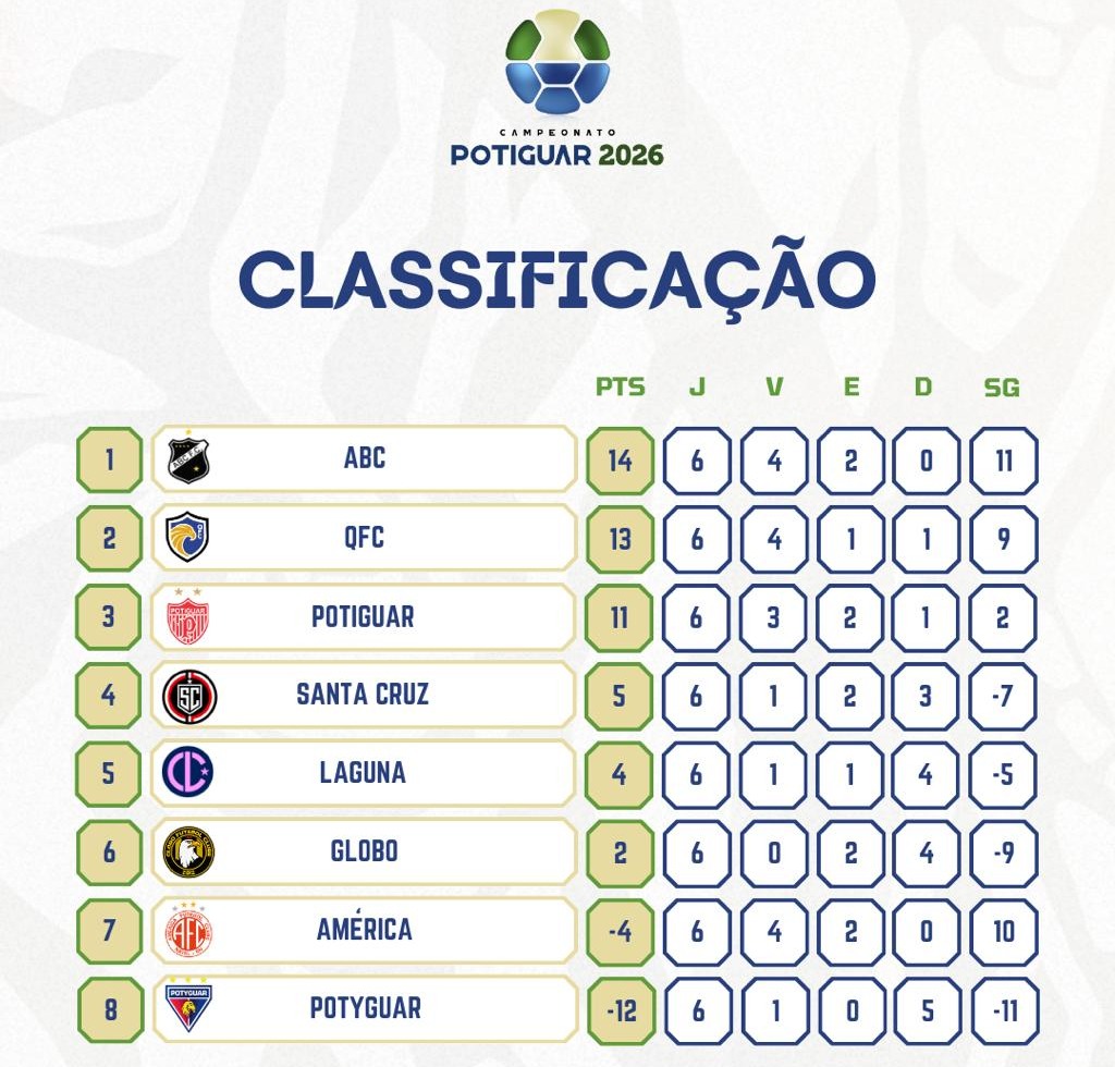 Nesta sexta rodada tivemos o empate do Santa Cruz diante do Laguna, partida disputada no estádio Domição, em Elói de Souza. O Santinha abriu 2 a 0, o Laguna virou para 3 a 2, mas no finalzinho veio o empate salvador. Tálisson. Luís Felipe e Ricardo Santana marcaram para o Santinha, enquanto Morán e Euller (2) anotaram para o Laguna. Destaque na partida a participação dos meninos do Santinha, campeões do Potiguar sub-17 na partida. O ala Zé, o volante Artur Braz (foto) e o meia Madson, além do também jovem valor Felipe Flor.