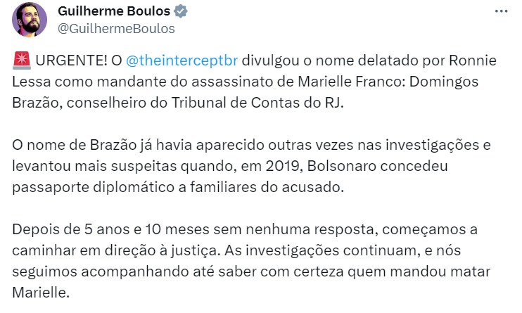 Do outro lado, porém, as citações são do envolvimento de Domingos Brazão com a família Bolsonaro. Marcelo Freixo, que seria o alvo do conselheiro, citou que ele já recebeu passaporte diplomático das mãos do ex-presidente da República. Segue: