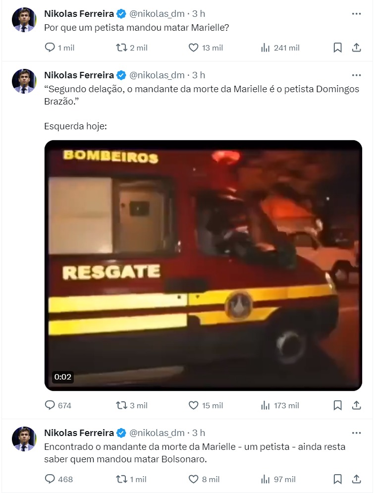 Quem primeiro se manifestou sobre isso foi o deputado federal Nikolas Ferreira, do PL. Ele repetiu uma série de Twitter onde aponta Domingos Brazão como "petista". Há na internet, inclusive, referência a participação do conselheiro na campanha presidencial de 2014, apoiando Dilma Rousseff, do PT. Não era por acaso. Ex-filiado ao MDB, ele era correligionário de Michel Temer, candidato a vice de Dilma.
