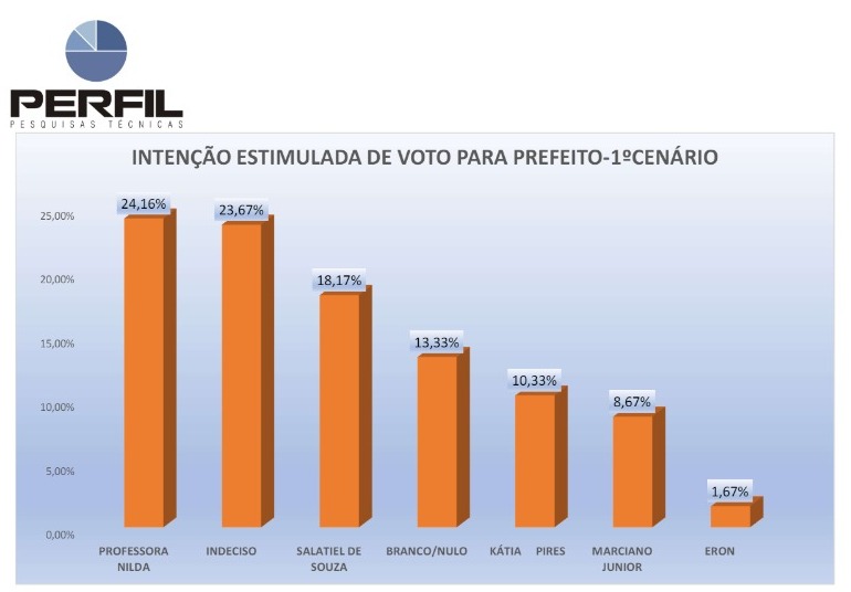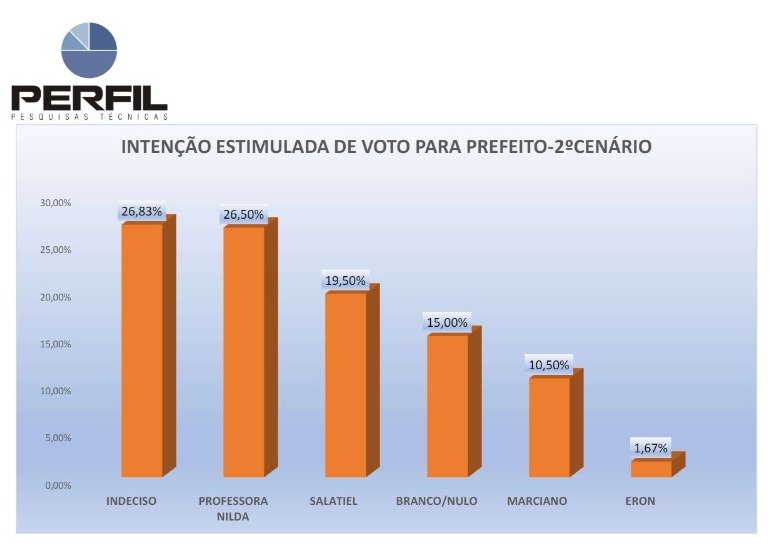 Segundo os dados, Professora Nilda sofreu uma queda de 14 pontos percentuais desde o último levantamento. Esse declínio contrasta com o aumento do número de eleitores indecisos, que representa agora mais da metade do eleitorado.