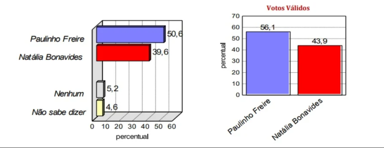 Penúltima sondagem eleitoral da Tribuna do Norte feita em parceria com o instituto Consult Pesquisa – a terceira será divulgada no sábado (26), às vésperas do pleito de domingo e no último dia do prazo permitido pela Justiça Eleitoral, a pesquisa estimulada mostra que o candidato Paulinho Freire mantém uma liderança estável, com 50.6% das intenções de votos dos 575 mil eleitores de Natal, enquanto a a candidata petista aparece com 39.6% ou 11 pontos percentuais a menos que o seu adversário.