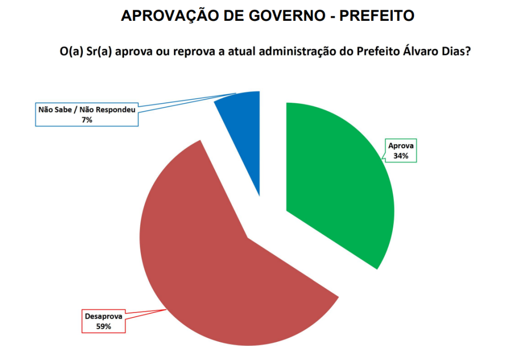 A PESQUISA SETA/ BG/ NATAL também perguntou aos entrevistados como avaliam a administração municipal. A gestão de Álvaro Dias foi reprovada por 59%, enquanto 34% aprovam e 7% não responderam.
