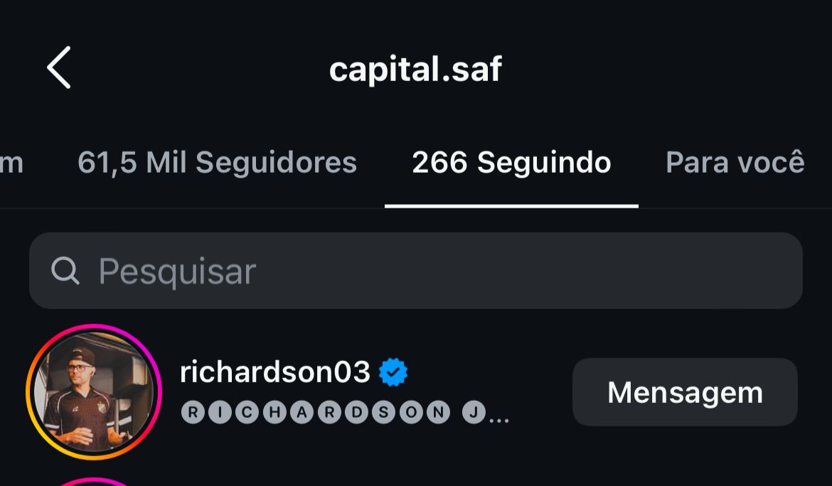 Outro detalhe curioso é que o Capital SAF não perdeu tempo e, em suas redes sociais, já segue Richardson, mesmo o jogador não tendo nenhum vínculo com o clube.