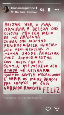 Em vídeo publicado na internet, os dois aparecem se beijando na praia em meio aos fogos de artifício. Pouco antes, Bruna Marquezine havia publicado uma mensagem sobre amor e coisas positivas para o novo ano.
