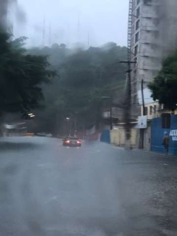Na manhã desta segunda-feira (17), um veículo ficou ilhado em uma “lagoa” que se formou no local.