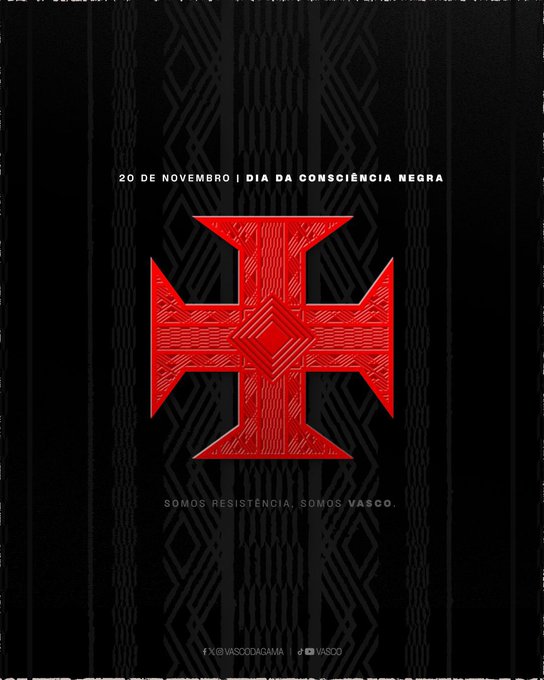 O Vasco carrega o antirracismo em sua história e em seu DNA. Nesta data, reforçamos nosso compromisso de seguir lutando por respeito, igualdade e inclusão. Pura verdade, primeiro time do Brasil a aceitar jogadores negros.