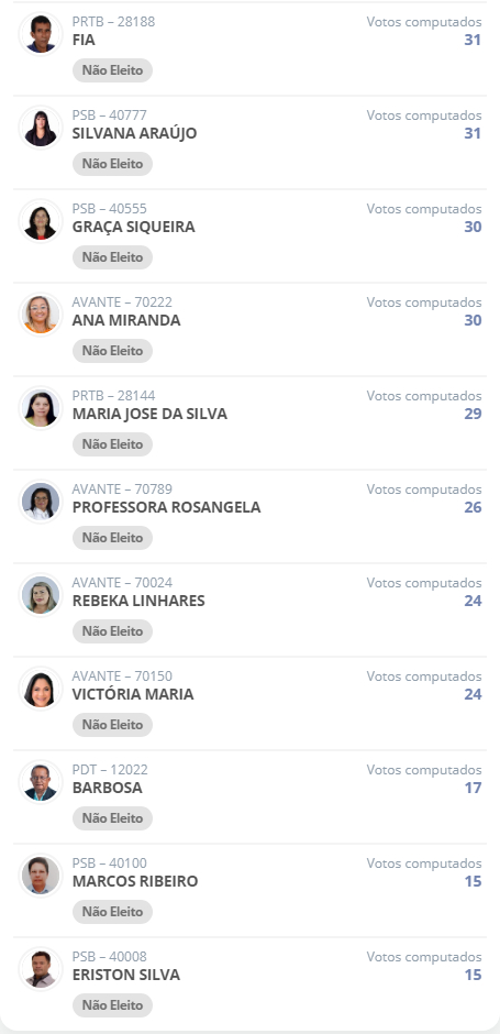 Os nomes são, principalmente, do PSB e do Avante, que até lançou candidatura própria a Prefeitura de Natal, com Rafael Motta. As duas gastaram verba eleitoral em nomes que tiveram 30 ou menos votos.