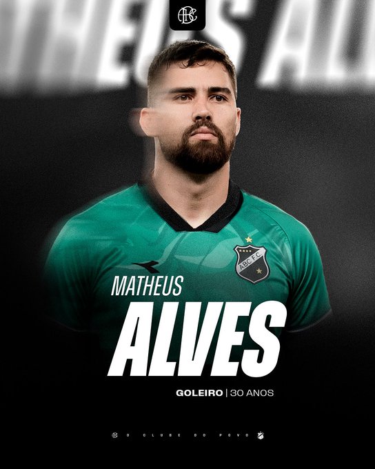 O goleiro Matheus Alves, 30 anos, que chega da Aparecidense/GO já havia sido divulagado pela imprensa e foi oificializado. Matheus Alves construiu sua carreira inteira praticamente no Goiás/GO, onde conquistou o bicampeonato goiano 2017-2018, além da Copa Verde 2023. O reforço fechou contrato até o término da disputa do Campeonato Brasileiro da Série D 2026. Bom goleiro, passou muito tempo na reserva de Tadeu, do Goiás, sem chance de atuar, até que saiu para defencer o Aparecidense.