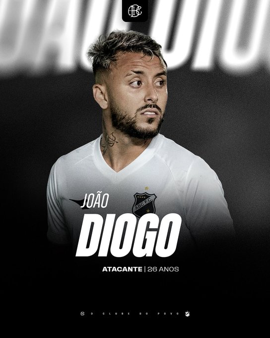 O outro nome, que também já era do conhecimento da torcida, é o atacante João Diogo, 26 anos, que estava disputando a Série C pelo Botafogo/PB. João Diogo passou pelo Cruzeiro/MG, Figueirense/SC, CRB/AL, Remo/PA, Manaus/AM, Santa Cruz/PE, São Bernardo/SP, entre vários outros clubes brasileiros, como também, tem experiência no futebol de Portugal e da Ucrânia. Fica até o final da Série D. O cara é rodado, viu, esteve em quatro equipes na temporada 2025 - Alverca de Portugal (não consta que tenha jogado), Santa Cruz, duas partidas, e Botafogo, seis jogos, não fez gol, mas tem uma assistência.