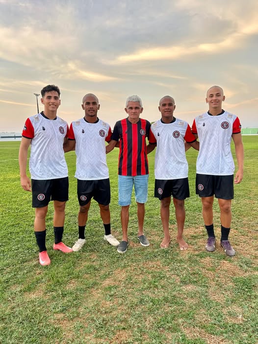 Felipe Flor, Zé, Madson e Artur Braz (na foto). Os garotos que disputaram o Sub 17 e estão integrados ao elenco profissional do Santa Cruz de Natal. O Zé, 16 anos, jogou a partida inteira contra o Potiguar, domingo, na derrota de 1 a 0. Esse é o trabalho desenvolvido pelo impagável Neto Ramos (na foto com os meninos). E para quem não sabe, foi no projeto Dez na Bola, que Neto revelou a craque Priscilla para o mundo.