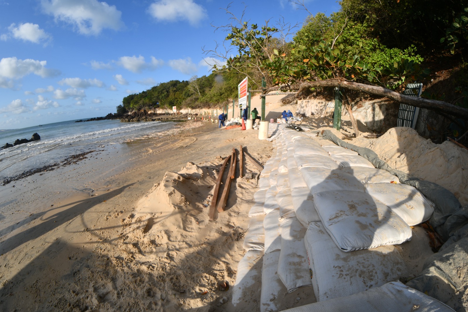 Além da instalação de sacos de areia na base do Morro do Careca, a Prefeitura também instalou o mesmo tipo de material na área dos dissipadores de drenagem e na frente dos hotéis que tiveram suas proteções costeiras destruídas e foram invadidos pela maré.