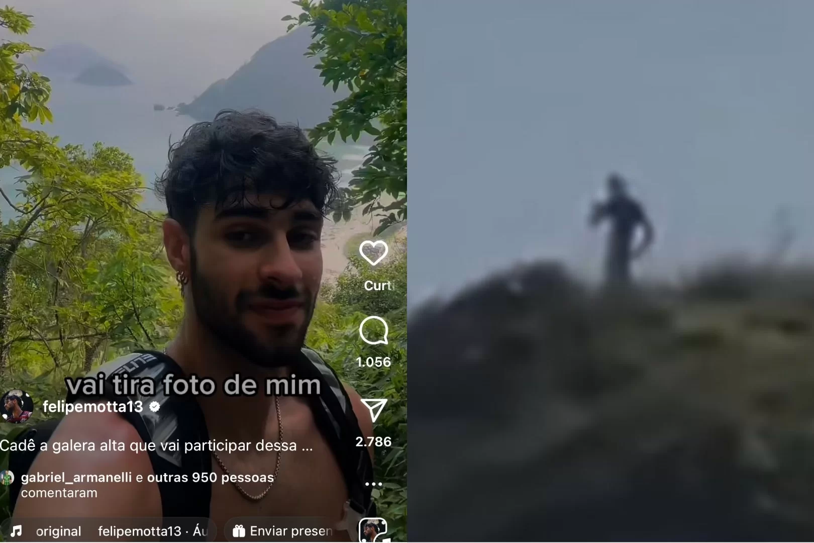 A notícia é do Metrópoles. “Eu fui fazer uma trilha para aproveitar a natureza e essa vista, mas aí a galera tira foto de mim, manda pra página de fofoca e me chama de ser estranho”, disse o atleta em um vídeo publicado nas redes sociais.