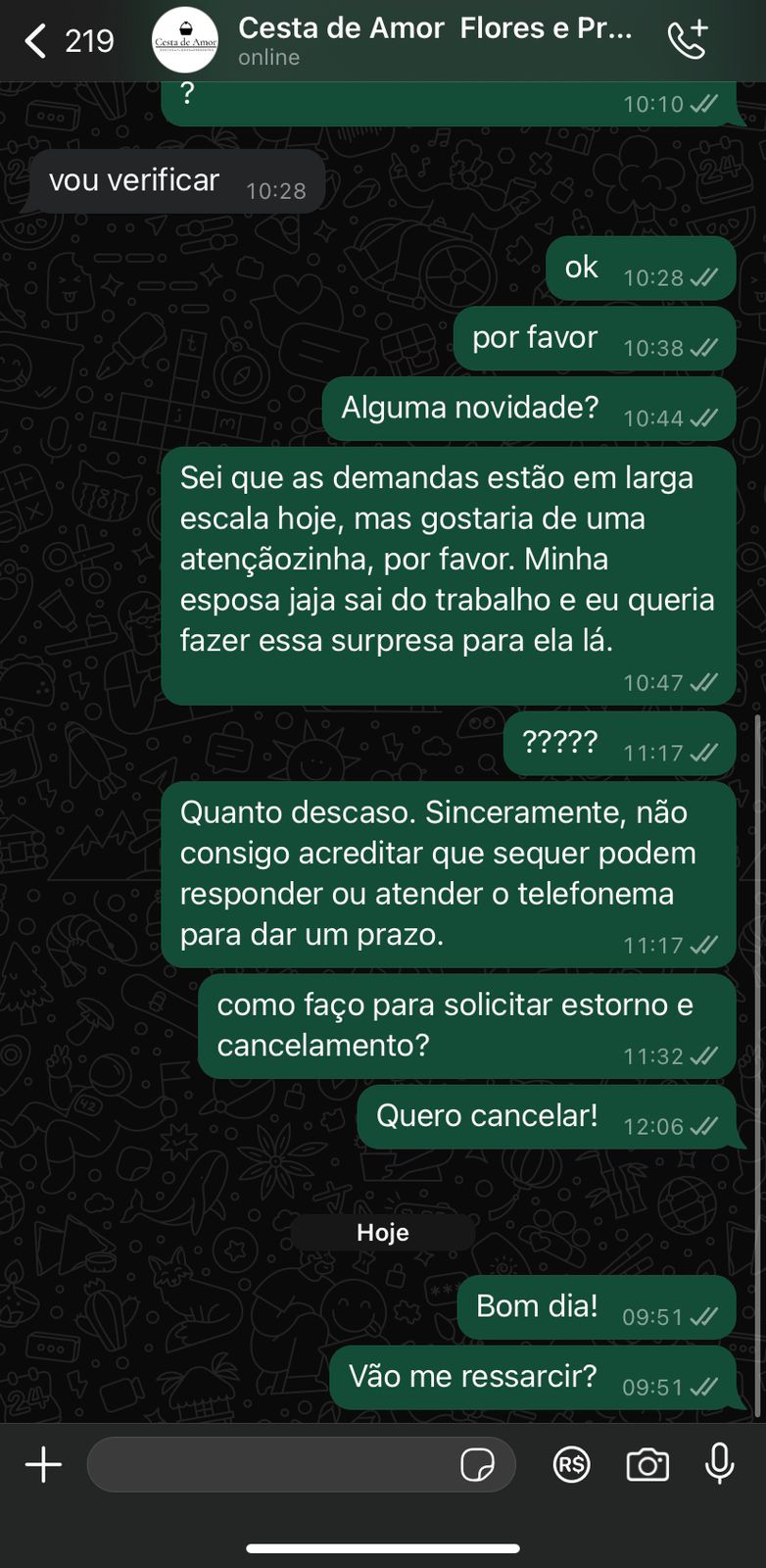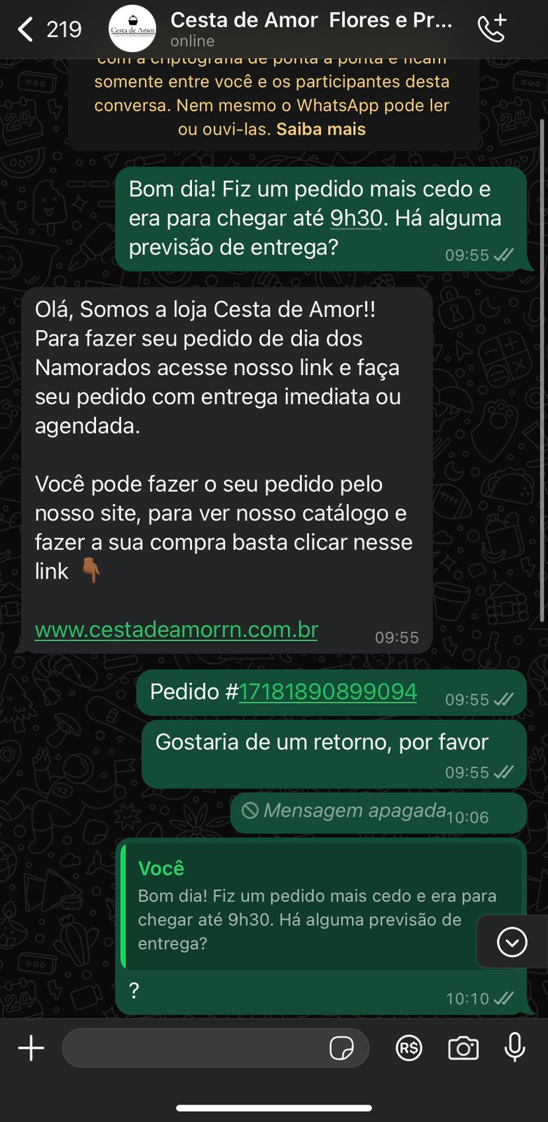 A empresa Cesta de Amor, que possui anúncio de entrega em até 1 hora após a compra, foi duramente criticada nas redes sociais por não cumprir o compromisso prometido e sequer dar retorno aos clientes.