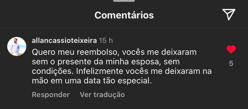 "Muita falta de responsabilidade. Fiquei frustrado. Não queria deixar a data passar em branco, mas o pior é que nem culpa minha era. Tive que sair às pressas para comprar em outra floricultura e consegui presentear minha esposa", contou.