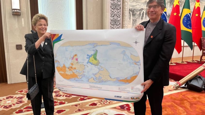 Antes disso, em abril de 2024, o instituto já havia produzido um mapa com o Brasil no centro do mundo–mas não invertido. O documento, parte da 9ª edição do Atlas Geográfico Escolar, incluía a marcação dos países que integram o G20 e das nações com representação diplomática brasileira.