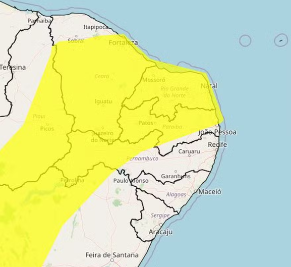 O aviso é da cor amarela, que significa perigo potencial, o nível mais baixo no grau de severidade do órgão (entenda abaixo os níveis).