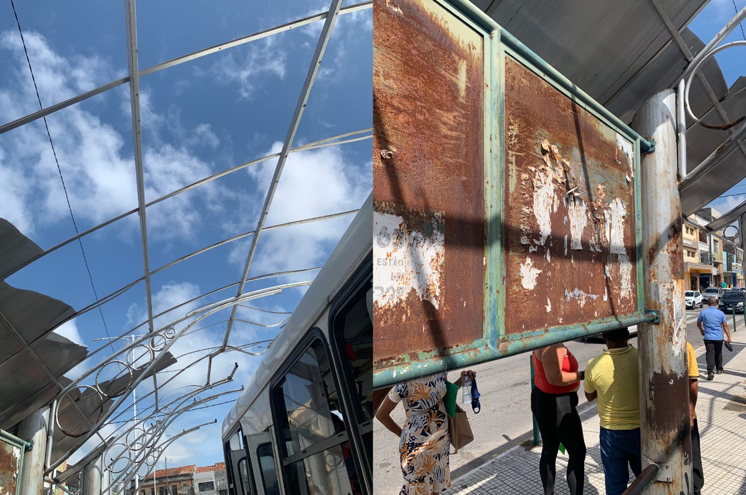 "Mas deve ser para ficar esse lixo que está lá agora por certo", acrescentou. No início do post, a situação atual dos abrigos das paradas de ônibus.