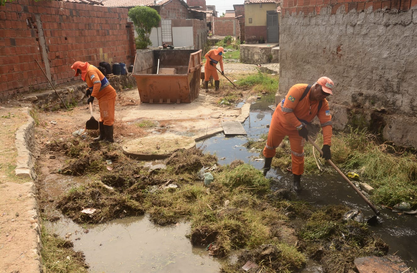Servidores da Semurb retiraram grande quantidade de lixo no canal. O trabalho estende-se pelas ruas Lira Tavares, Tavares de Lira e Francisco Pascoal, no bairro Santo Antônio.