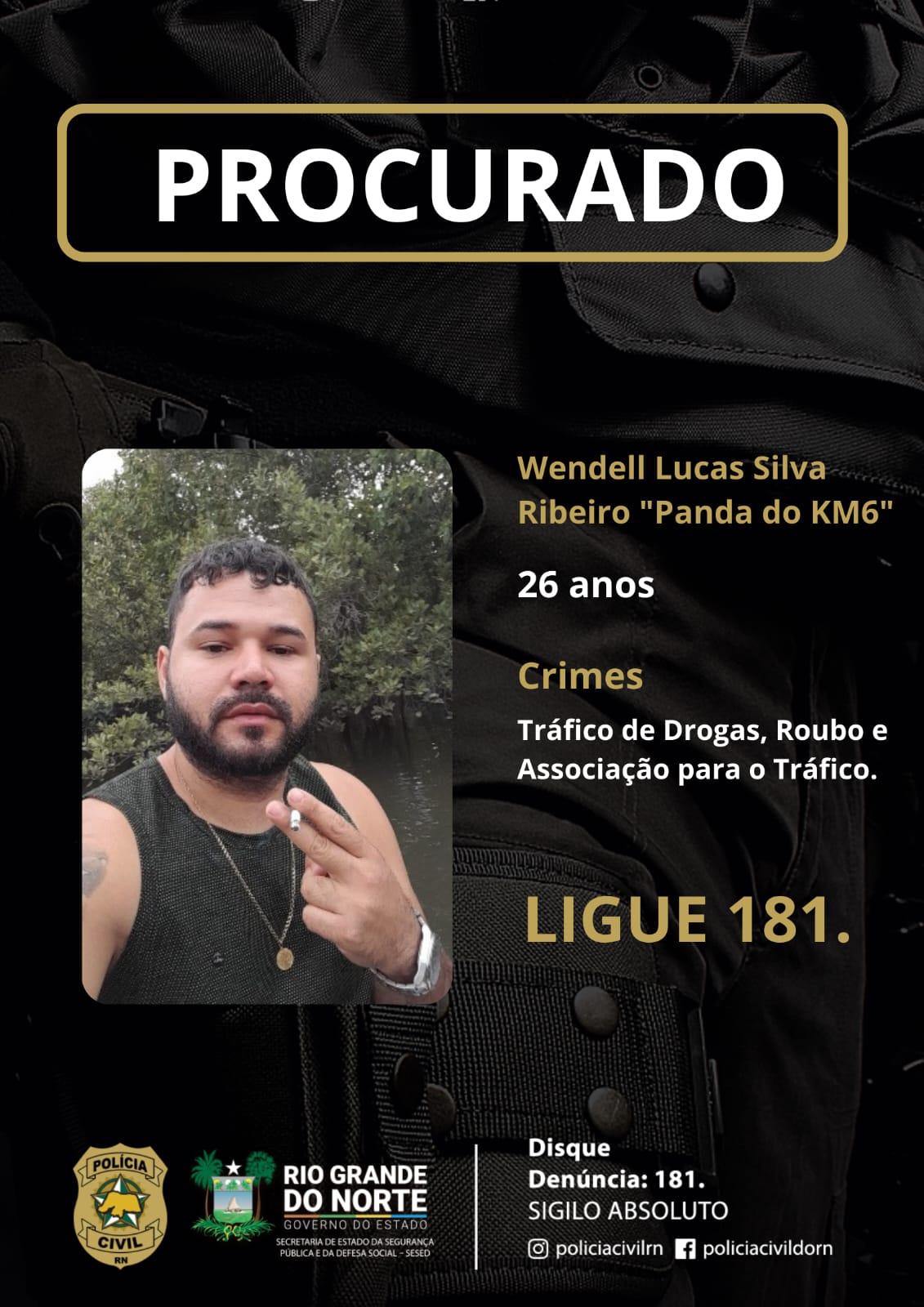 Um dos investigados já foi preso pela Polícia Civil, em outubro de 2023, no âmbito da "Operação Ananke", e agora passa a ter mais um mandado de prisão em seu desfavor. O outro, responsável por guardar as drogas, foi identificado como Wendell Lucas Silva Ribeiro, de 26 anos. Ele encontra-se foragido e as diligências investigativas prosseguem para a realização de sua captura.