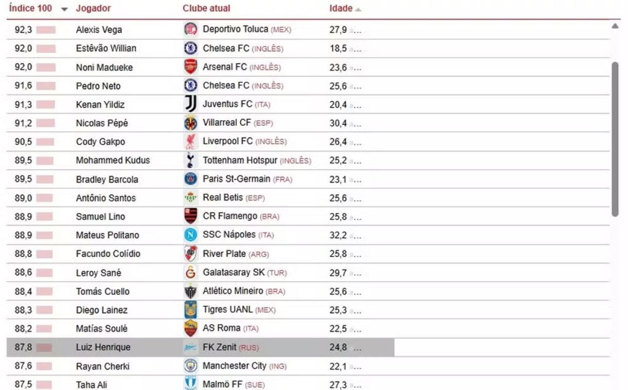 No ranking do CIES, Luiz Henrique é o melhor driblador do futebol russo, com 87.8 pontos somados, seguido por Pedrinho, que também joga no Zenit. Entre os brasileiros, o camisa 11 fica atrás de Vini Jr. (2º, do Real Madrid), Estêvão (6º, do Chelsea), Antony (14º, do Betis) e Samuel Lino (15º, do Flamengo). Michael Olise, do Bayern de Munique, lidera a lista com 100 pontos.