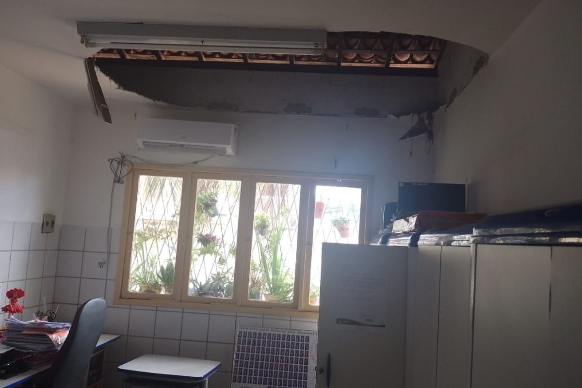 A diretora pedagógica e uma nutricionista da Escola Municipal Professora Maria Alexandrina Sampaio quase foram atingidas após parte do teto da sala da diretoria pedagógica cair, no bairro Pajuçara, zona Norte de Natal.