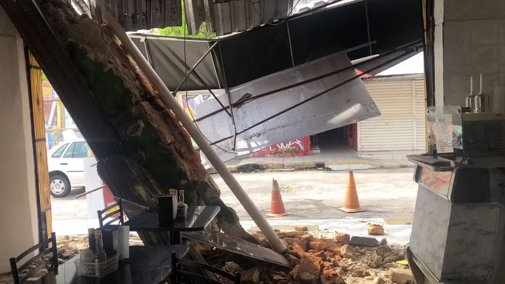 "Quando fui abrir a segunda porta de rolo, notei que começou a cair uns fragmentos da estrutura, de cimento. Quando a gente se afastou, o teto veio abaixo", disse.