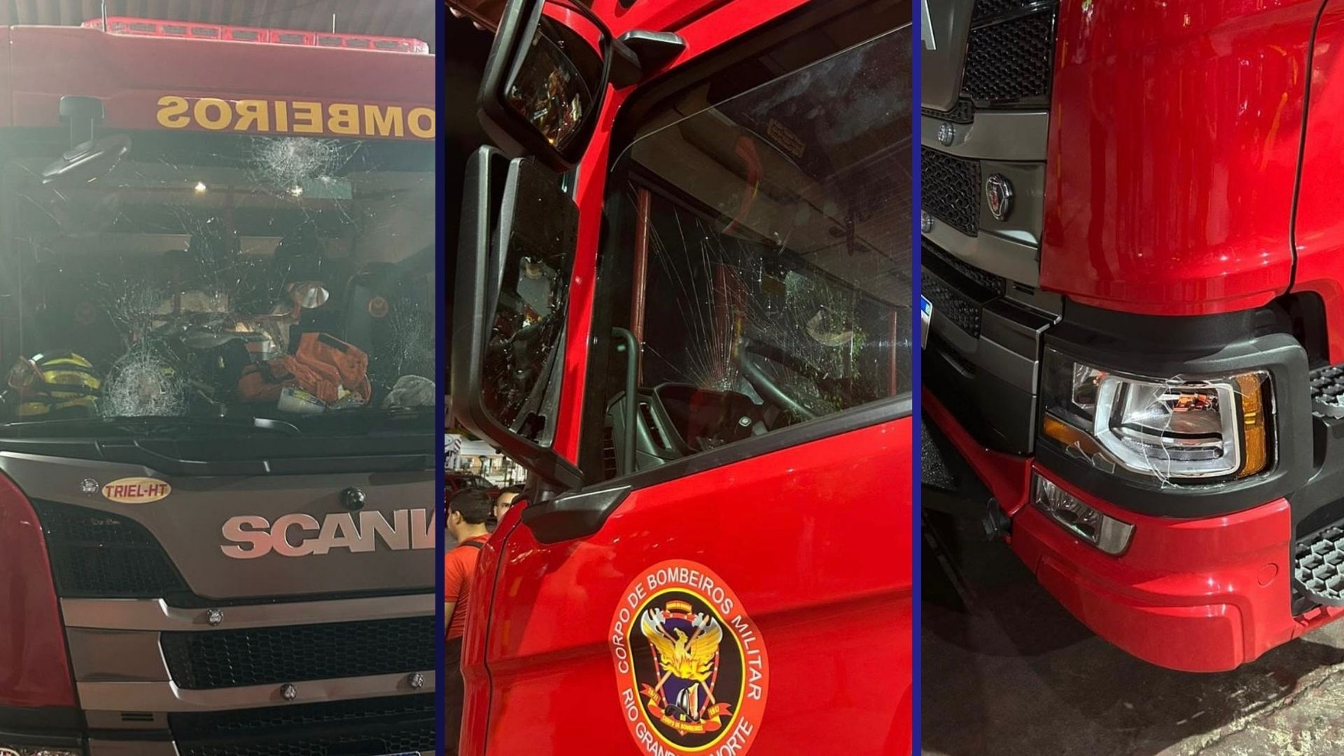 Essa fala acima é de um dos militares que estava dentro da cabine do caminhão de combate a incêndio do Corpo de Bombeiros, que foi recebido com paus, pedras e até capacetadas de moto na ocorrência em Felipe Camarão na noite deste domingo (3), quando vândalos tocaram fogo em dois ônibus.
