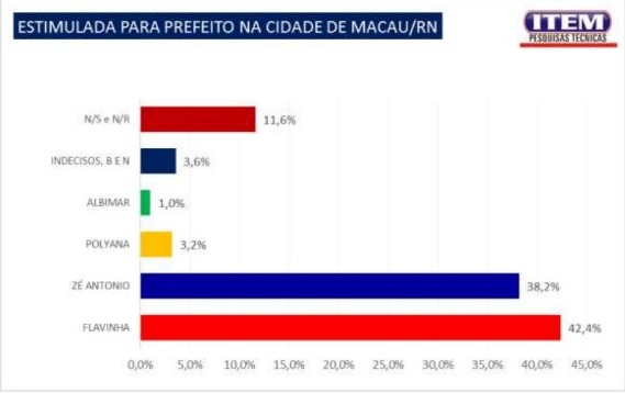 A disputa segue eleitoral em Macau indefinida, com apenas três pontos separando os dois candidatos: Flávia Veras e Zé Antonio, de acordo com o instituto Item Pesquisas Técnicas. A situação é um dos destaques do Jornal das 6 - veja no link acima: