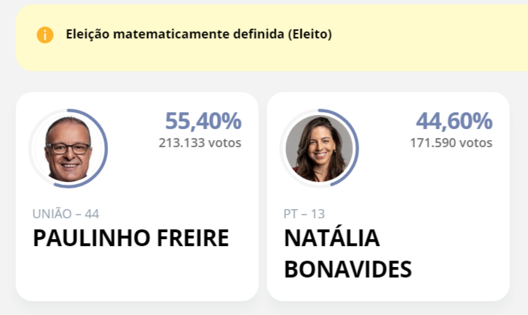 O deputado federal foi eleito no segundo turno, cerca de 10% a frente da adversária, Natalia Bonavides, do PT - assim como previu o atual prefeito