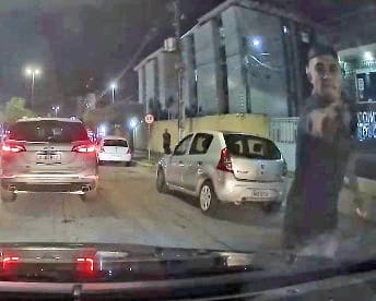 Neste segundo encontro, é possível ver que a situação é diferente. O homem pede para o motorista reduzir a velocidade e parar o veículo. Ele acusa o motorista de ter batido nele. E aí começa a discussão.